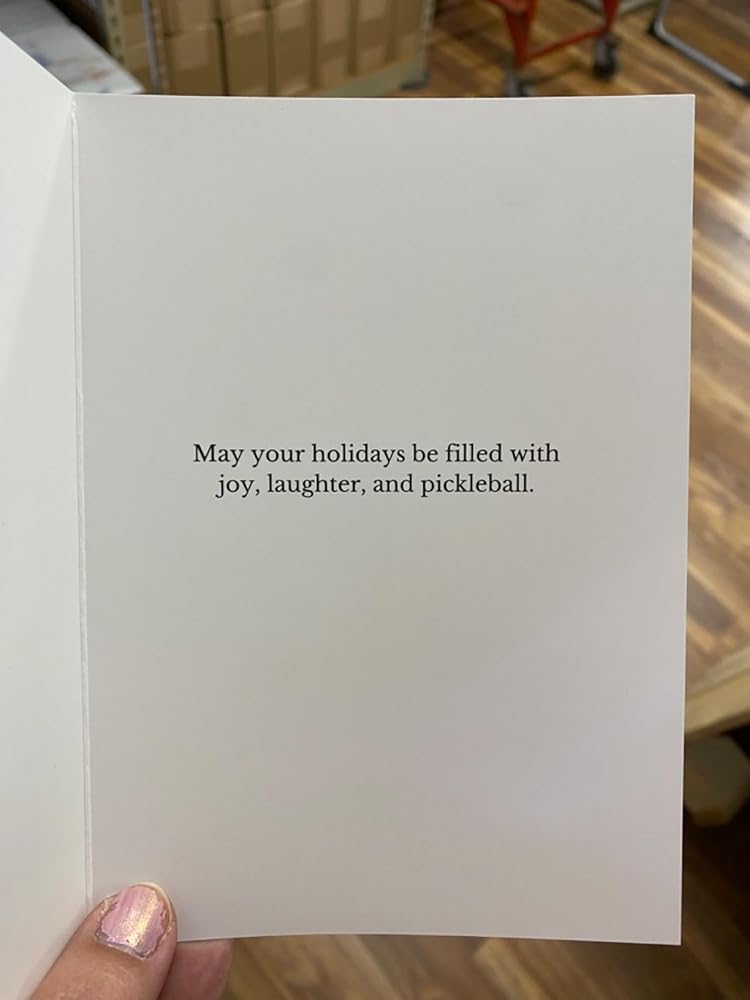 These cards are so freaking cute! My boss and his family are big fans of pickleball and I can't wait to surprise them with these at Christmas! Arrived fast and the quality is A+!