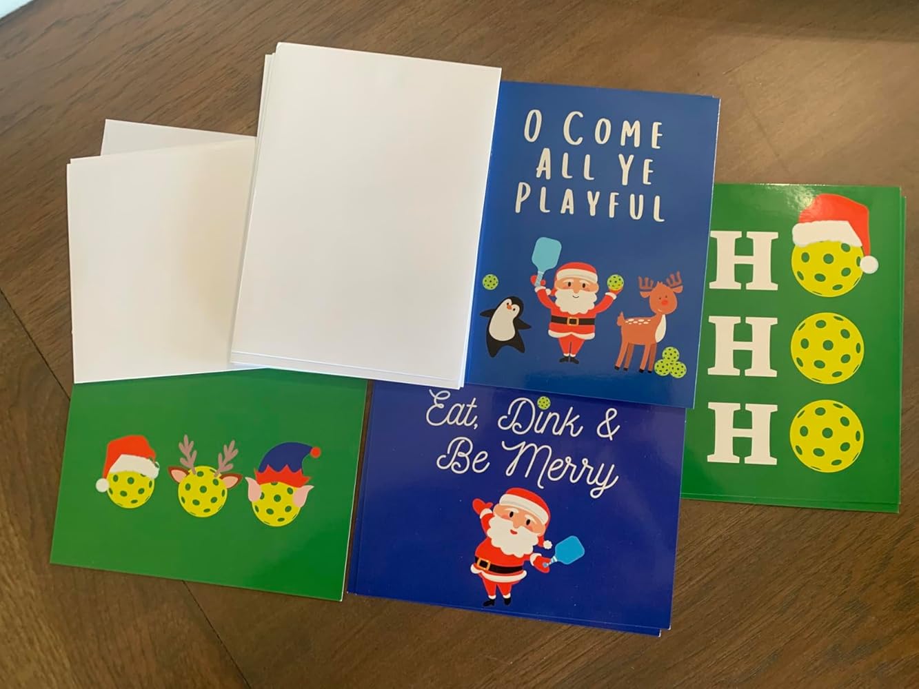 Festive Pickleball-Themed Designs: Each card is decorated with holiday artwork and a playful pickleball twist — perfect for sharing laughs and good vibes with your dinking buddies.