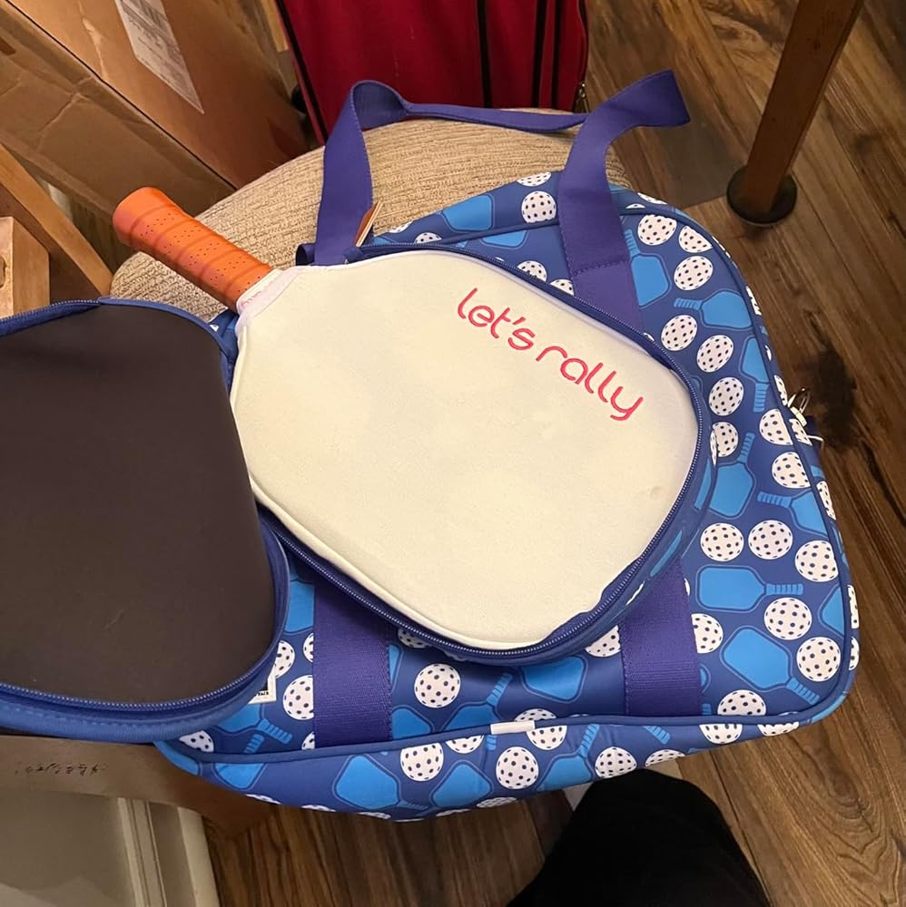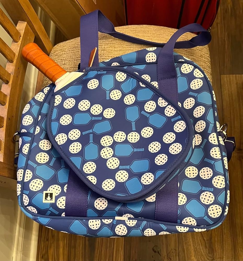 This ROYALFAIR pickleball bag is so cute, and it is a great quality bag for my pickleball supplies! Love the bright color option and the pickleball design. The bag fabric is durable, and the zippers slide back and forth well. It's super easy to fit my paddles in the front slot with plenty of room for other accessories in the main compartment. The handles and strap and comfortable and make the bag easy to carry. Can't say enough about this bag, except that if you pickleball, you need to get one!